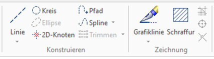 Befehle aus Gruppen „Konstruieren“ und „Zeichnen“, z.B. Konstruktionslinie, Grafiklinie, Schraffur |