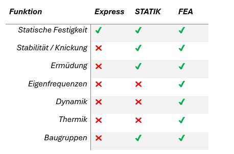 Der Express-Modus eignet sich für erste Abschätzungen, ersetzt jedoch keine vollständige FEA-Studie.