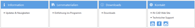 Die Startseite von IN-CAD 3D wurde überarbeitet und bietet jetzt direkten Zugriff auf: