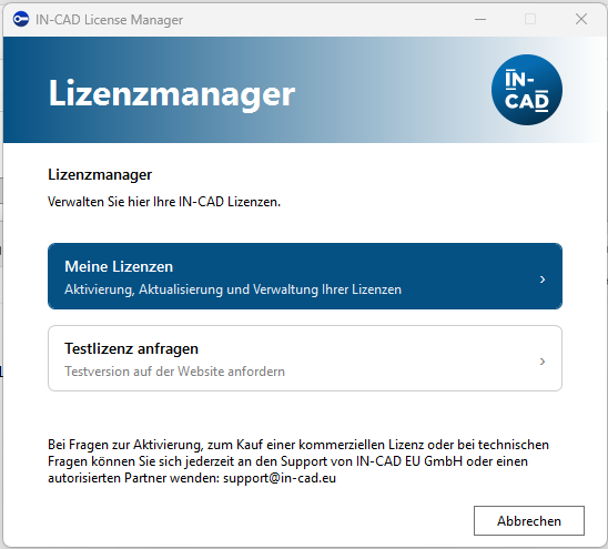 Mit dieser Anleitung aktualisieren Sie Ihre IN-CAD Lizenz online – z. B. nach einer Verlängerung, einem Upgrade (IN-CAD Premium Support) oder beim Wechsel von einer Testlizenz auf eine Vollversion.